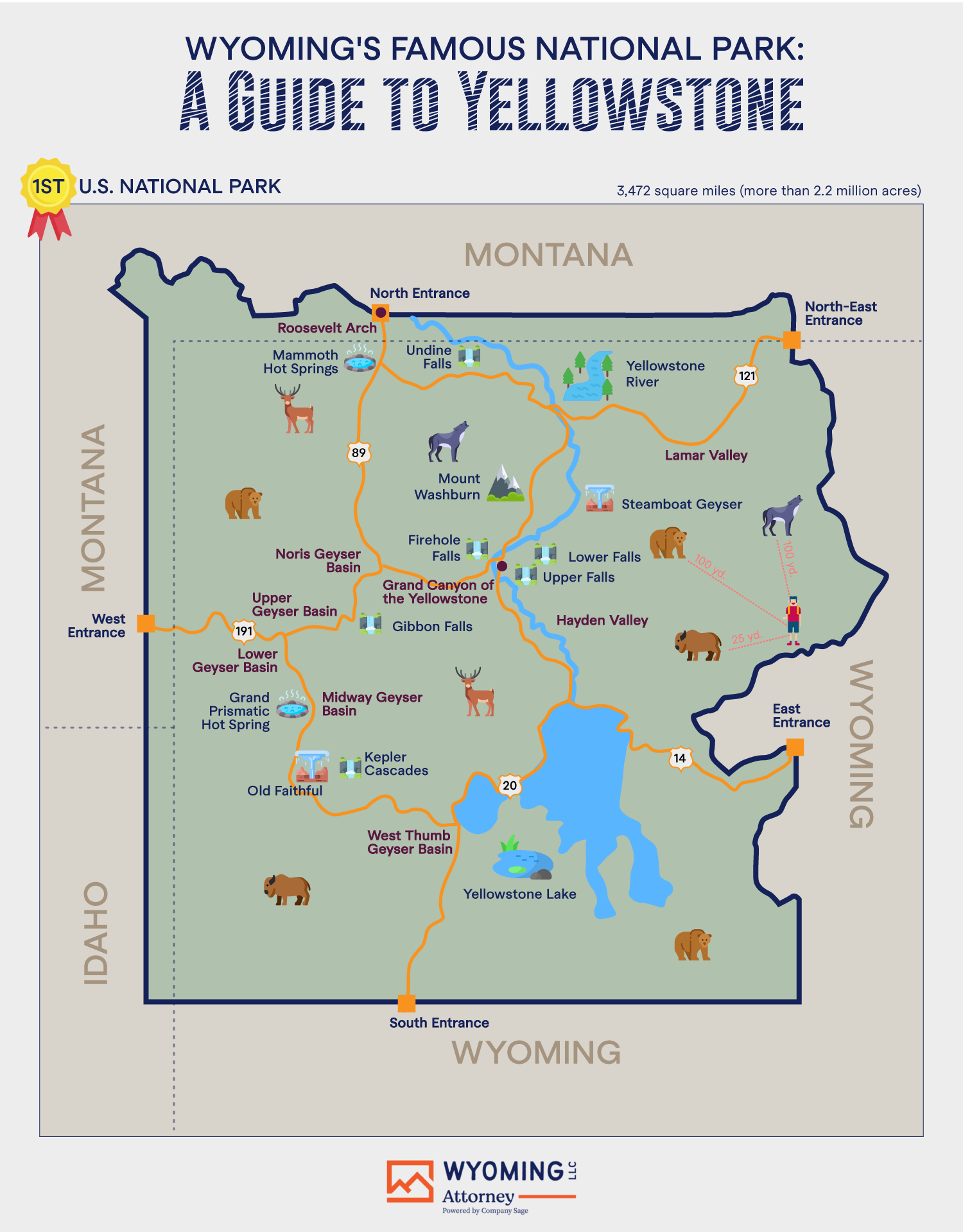 Wyoming's Famous National Park: A Guide to Yellowstone - WY Trust & LLC Attorney - Infographic